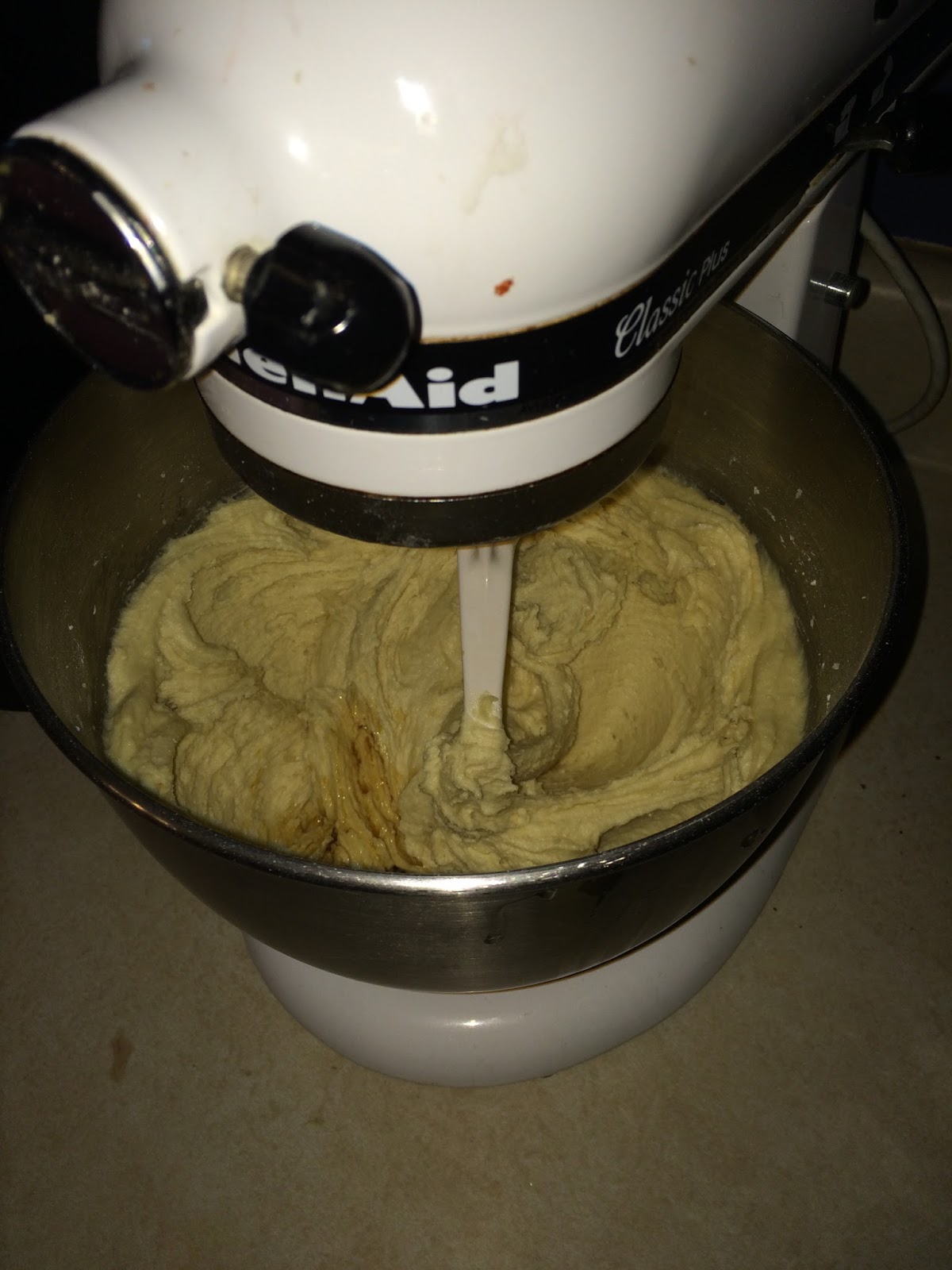 Then, in your mixer, mix together the butter and sugar until fluffy.